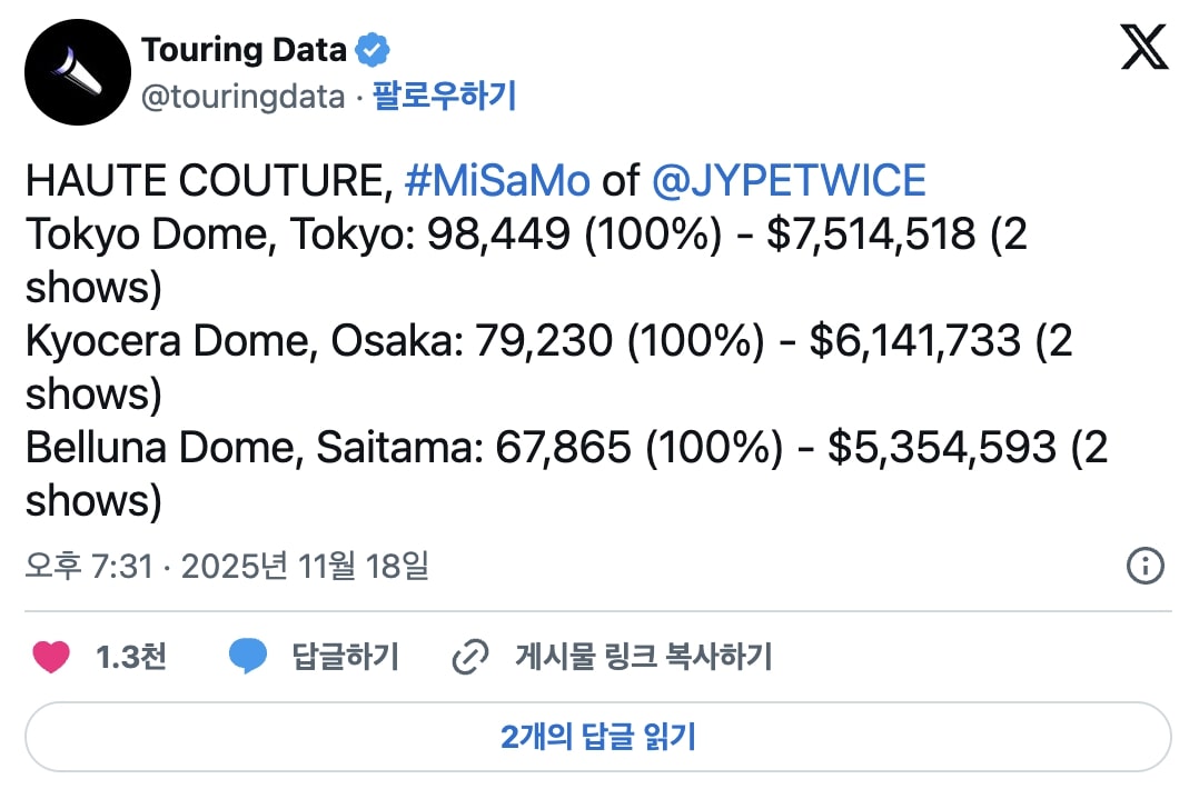 TWICE Misamo, Japonya’daki Dome turunda elde ettikleri gelirle şok etkisi yarattı