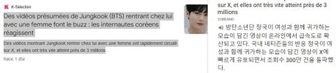 İngilizce, İspanyolca, Portekizce, Çince, Endonezce, Türkçe, Fransızca ve Japonca yayın yapan çeşitli medya kuruluşları Jungkook’un sevgilisi hakkında konuşurken, Jungkook’un ülke medyası hâlâ sessizliğini koruyor.