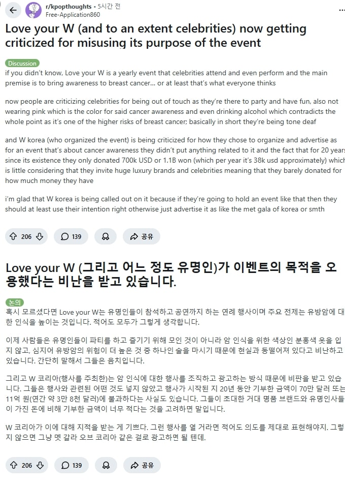 Fashion magazine W Korea is facing criticism for hosting an event to raise awareness of breast cancer, but the event was deemed to go against the stated purpose. Furthermore, W Korea has neither issued a statement regarding this, instead just hastily deleting some posts or… pic.twitter.com/B7WOcjQEa2