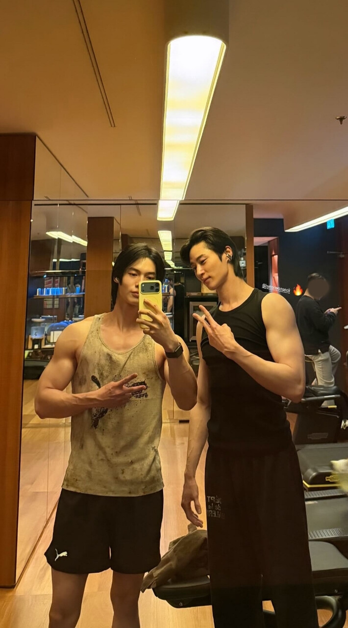 Win Metawin ve Byun Wooseok spor salonunda birlikte selfie çekti